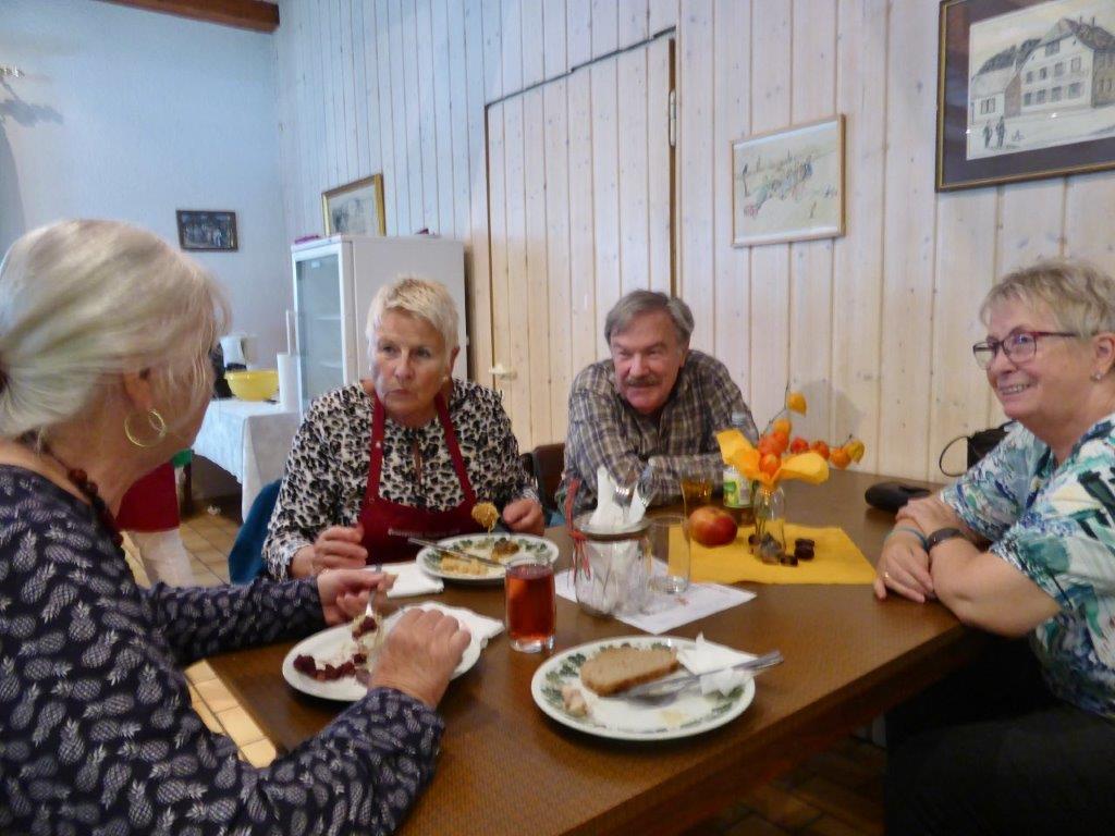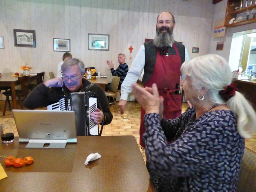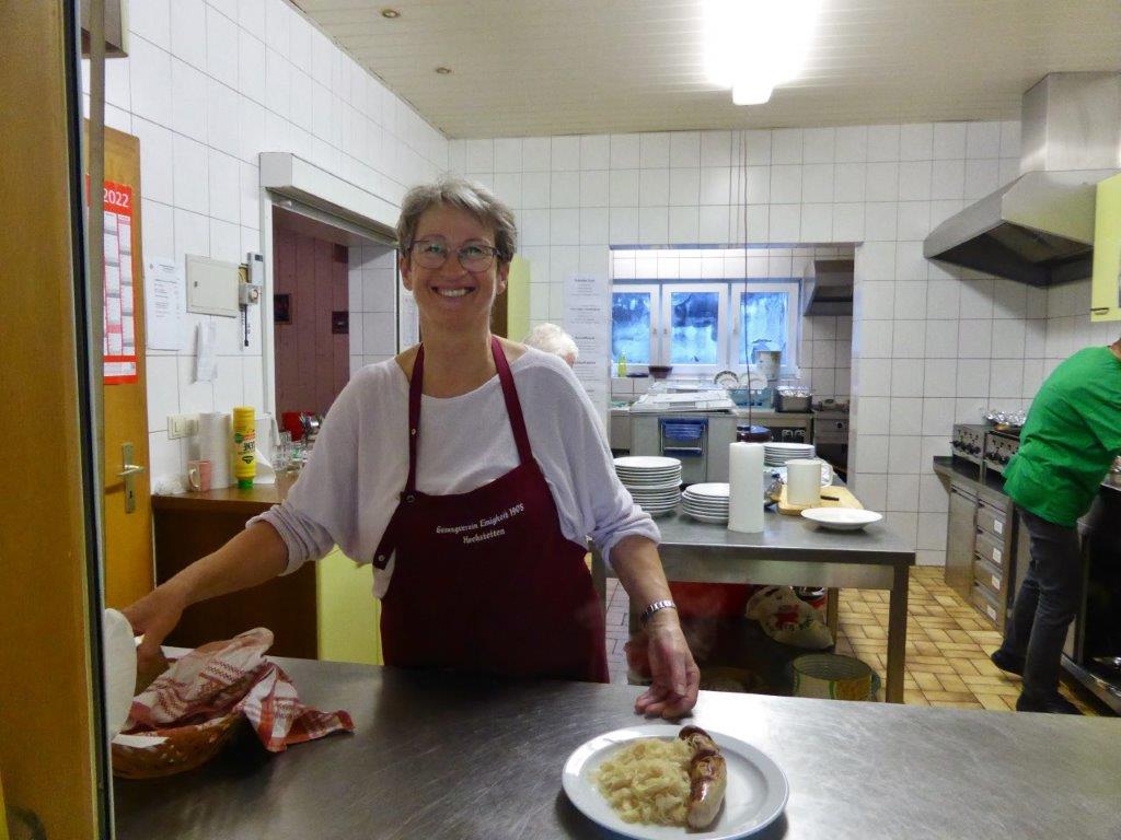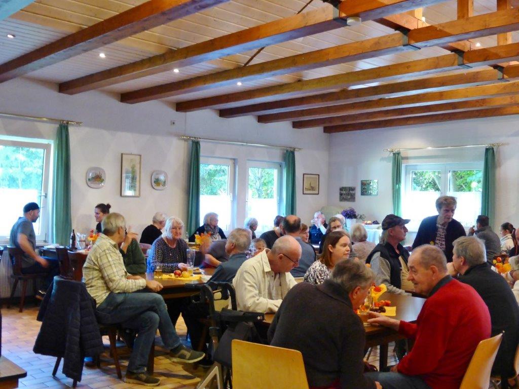 Bevor so ein Fest stattfinden kann, stehen natürlich auch viele Vorbereitungen an. Fleißige Helferinnen und Helfer fanden sich zuvor für die Außenarbeiten ein und samstags für das Richten des Vereinsheim, vielen Dank Euch allen. Unsere Rosi hatte sich mit schöner Herbstdeko sehr viel Mühe gemacht, das schafft doch gleich eine gemütliche Atmosphäre. Am Sonntagmorgen füllte sich bald die Kuchentheke und in der Küche herrschte emsiges Treiben, sollten doch die angebotenen Speisen fertig sein, wenn sich die Gäste einfinden würden. Es hat alles supergut geklappt und das Küchenteam war für den Ansturm gewappnet. Klaus Eichsteller sorgte später mit seinem Akkordeon für Stimmung und es wurde gerne mitgesungen. Im Laufe des Nachmittags war die Kuchentheke geplündert und zur Vesperzeit fanden sich wieder neue Gäste ein. Ein Kommen und Gehen und auch montags funktionierte das alles wieder gut. Neue Kuchen wurden gebracht und pünktlich um 11.30 Uhr fanden sich die ersten Gäste ein. Das Vereinsheim füllte sich nach und nach, auch unser Bürgermeister Herr Möslang fand sich ein, ebenso Betriebsangehörige, die bei uns ihre Mittagspause machten – danke für die Treue zu unserem Verein. So lief auch dieser Tag gut für uns. Die Zusammenarbeit, mit toller Unterstützung unserer beiden passiven Mitglieder Beate und Tobias hat sehr gut geklappt, auch hierfür ein ganz großes Dankeschön! Auch dem emsigen Putzteam, das zum Festende wieder alles blitzeblank wienerte ganz herzlichen Dank! Fazit: Das war ein gelungenes Fest, dank vieler Helferinnen und Helfer und unserer lieben Gäste! Nächstes Jahr gerne wieder.