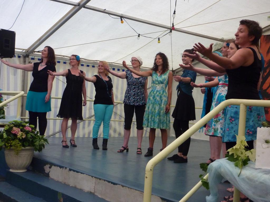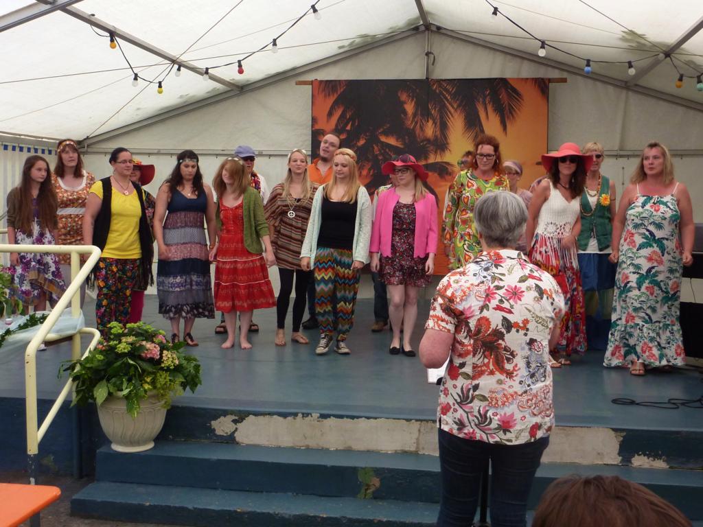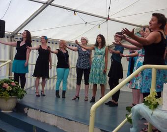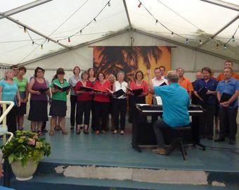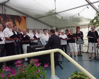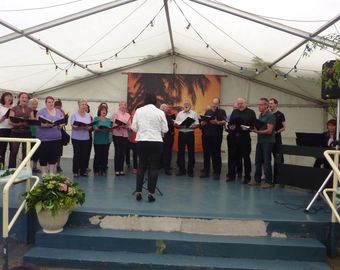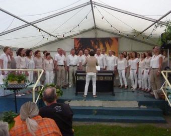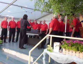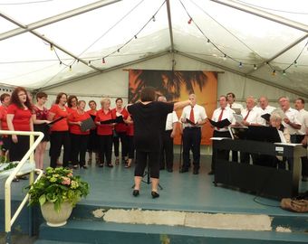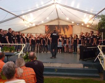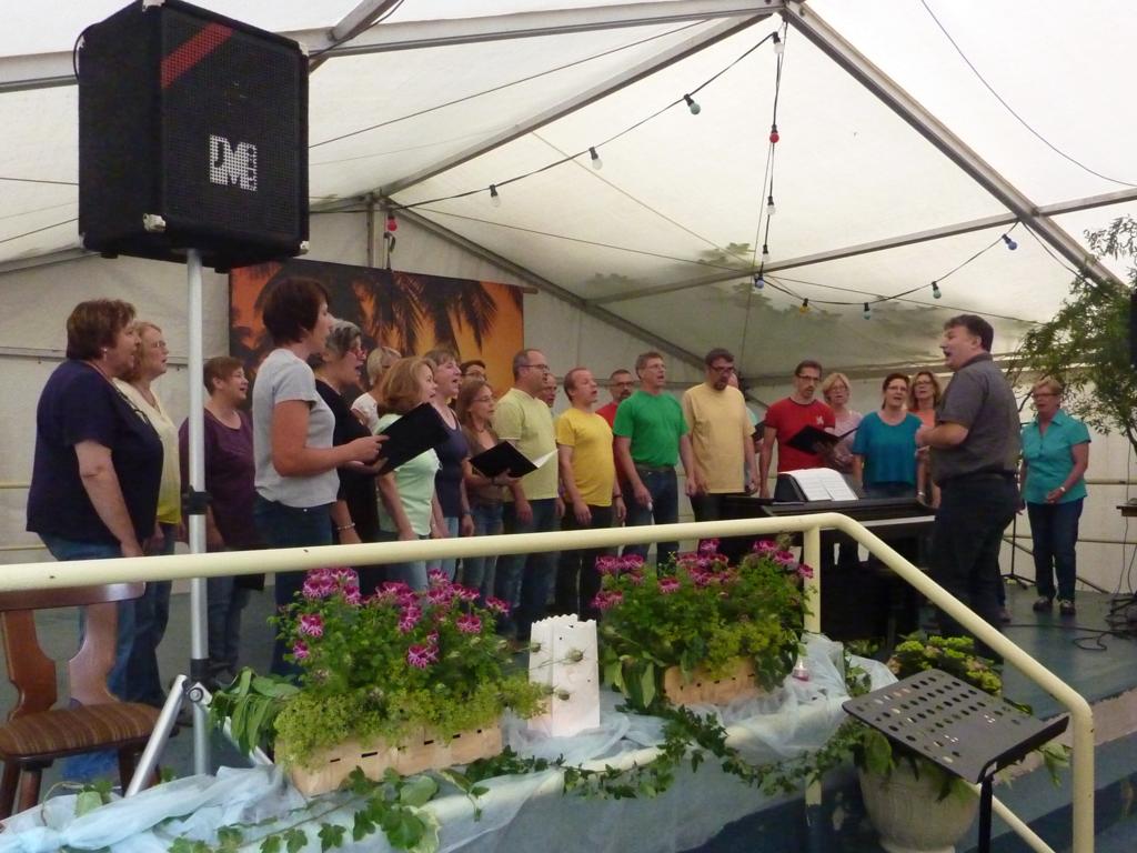 Am Sonntagabend war Einsingen unseres Chores im schönen Garten von Vreni und Norbert, danke für die Erfrischung. So vorbereitet eröffneten wir um 18.00 Uhr mit drei Liedern den "Abend der modernen Chöre". Maika Torge übernahm hier in bester Manier, mit musikalischen Anekdoten und Fragen zu traditionellem Liedgut an die jungen Chöre, die Moderation - super, danke Maika! Mit den Chören "da Capo" (Liederkranz Graben), "die Vocaleras" (Frauenchor aus Karlsruhe), Mikadochor (Nordstadt Karlsruhe), "Klinikchor" (Städtisches Klinikum Karlsruhe) "Gsang for fun" (Sängerbund/Liederkranz Heidelsheim), "Coro minuetto" (Sängerbund Linkenheim)und "JCK-das setzt sich" (KIT Campus Süd) hatten wir ein Programm, das viele Herzen höher schlugen ließ. Jeder Chor präsentierte sich wunderbar auf seine Weise und man konnte die Bandbreite der modernen Chormusik erahnen. Das war wirklich ein Highlight unseres Festes!