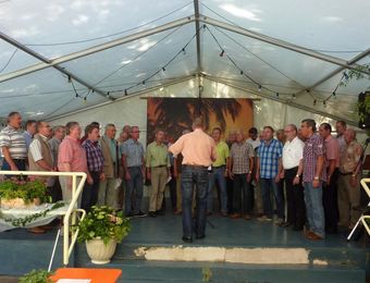 Die Gäste hatten sich mit Rindfleisch und Meerrettich oder Gegrilltem gestärkt und lauschten dem Chorgesang der Eintracht Spöck, der Germania Staffort, dem Sängerbund Friedrichstal, dem GV 1873 Rußheim, dem Liederkranz Spöck und dem GV 1864 Untergrombach.