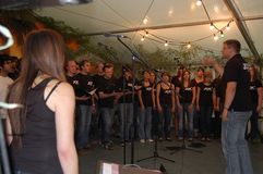 Der junge Chor “Sempre Verde” vom GV Untergrombach bot ebenfalls einen Ohrenschmaus mit „Silence ist golden“, „Hallelujah“ von L.Cohen und einem Love Songs-Medley, arrangiert von seinem Dirigenten Rainer Kneis. Das Publikum im vollbesetzten Festzelt lauschte genüsslich und manche sangen sogar, leise natürlich, die bekanntesten Passagen mit.