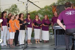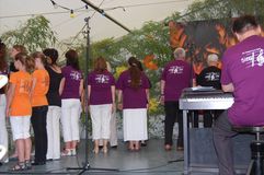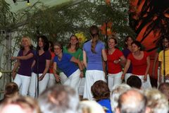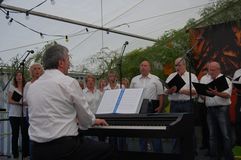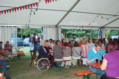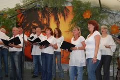 Zur Kaffeezeit ertönten dann die Stimmen des Gesangvereins Liederkranz Graben. Als gemischter Chor sangen sie vier traditionelle und erfrischende Lieder. Unser Bruderverein, der Sängerbund Linkenheim, besuchte uns mit dem Frauen- und Männerchor. Unter der Leitung ihres Dirigenten Thomas Kästner brachten sie je drei beschwingte Stücke zu Gehör. Unter anderen auch „Rapa Nui“, „Viva la Compagneia“ und „Butterfly“- total passend zu einem solch tollen Sommertag. Auch der Liederkranz Spöck ließ sich bei der Liedauswahl vom Wetter beeinflussen und hatte ein Stück aus Afrika im Gepäck.