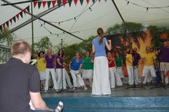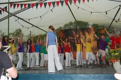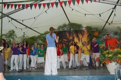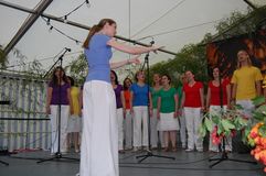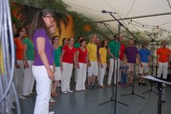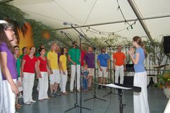 Unsere Gastchöre am Sonntag deckten ein breites Spektrum der Chorliteratur ab. Während sich unsere Gäste das Mittagessen schmecken ließen, wurden sie vom Kinderchor „Singflöhe“ vom Sängerbund Linkenheim unter der Leitung von Patricia Voss unterhalten. Voll Begeisterung und Freude sangen sie die Lieder „Meine Mami“, „Pinguin Fridolin“, „Flummi-Lied“, „Mein Pony Paulchen“ und „Wir sind Kinder“ in einem voll besetzten Zelt. Das Publikum war entzückt von den Kleinen.