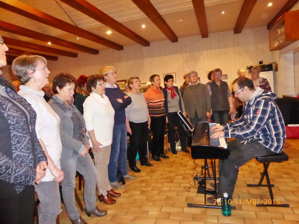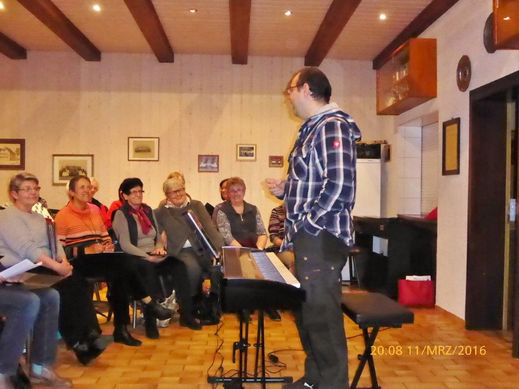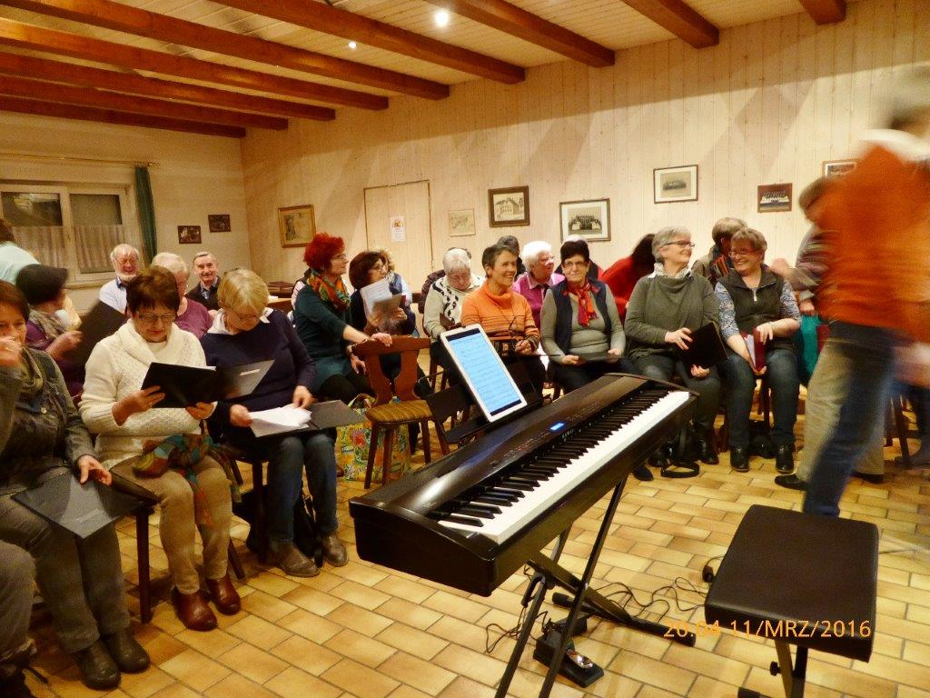 ...welch einen Zustrom unser Chorprojekt am 11. März erfahren hat - wir sind begeistert. Viele waren unserem Aufruf gefolgt und auch unser Dirigent hatte maßgeblichen Anteil, dass sich über 30 Sängerinnen und Sänger für unseren Projektchor einfanden. Da lachte Aldos Dirigentenherz, auch über sein neues Klavier und diese Stimmung übertrug sich auf die Chorprobe, die mit viel Spaß und Freude absolviert wurde. Alle folgten mit höchster Aufmerksamkeit den Erklärungen und Tipps des Chorleiters und Schritt für Schritt wurden zwei der drei Konzertlieder zu üben begonnen. Es hat schon sehr gut geklappt, was auch unseren anwesenden Sängerfreundinnen und -freunden aus Spöck und Friedrichstal zu verdanken war. Die beiden Vereine werden auch von Aldo Martinez dirigiert und er hat dort für uns die Werbetrommel gerührt. Das ist ihm offensichtlich gelungen, aber auch viele Interessierte aus Linkenheim-Hochstetten kamen zu uns ins Vereinsheim. Ist dies doch die Möglichkeit, unseren Verein kennenzulernen und uns einfach nur bei unserem Konzert zu verstärken, oder bei Sympathie auch regelmäßig freitags zur Chorprobe zu kommen, mit Begeisterung daran teilzunehmen und danach mit guter Laune ins Wochenende zu starten. Diese Option ist mit unserem Chorleiter garantiert und wer jetzt doch auch Lust zum Singen bekommen hat, kann gerne am 2. Termin,