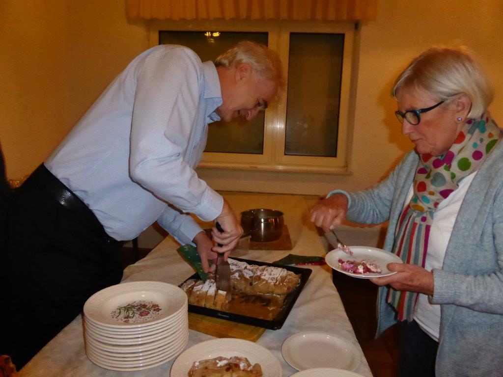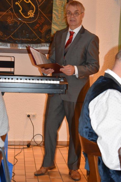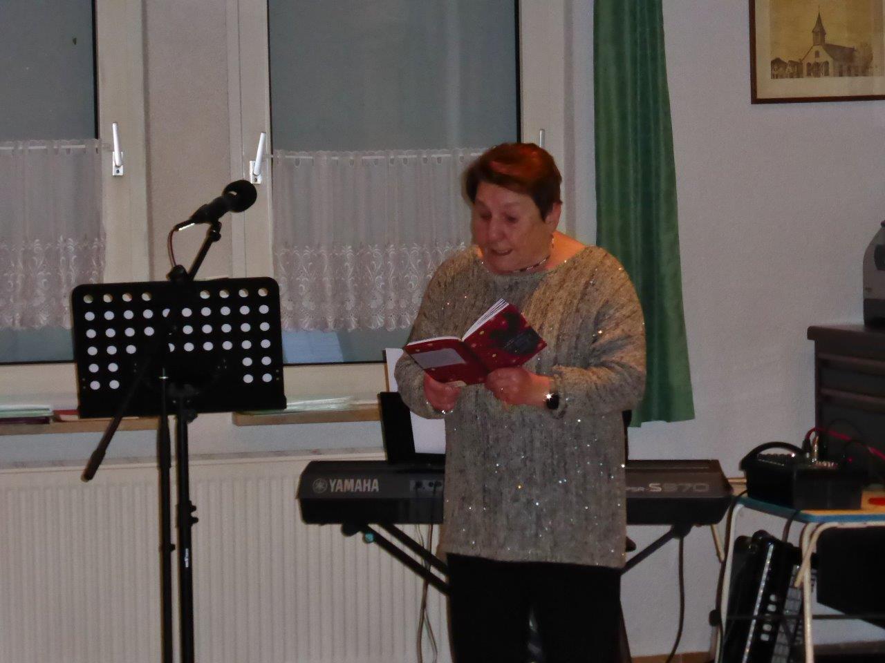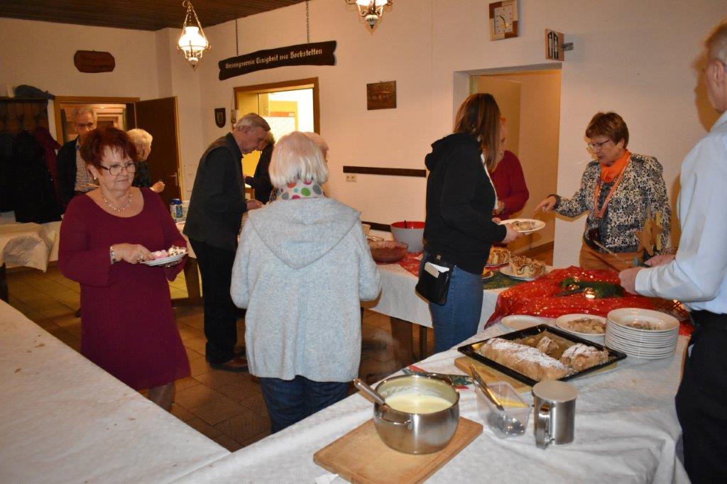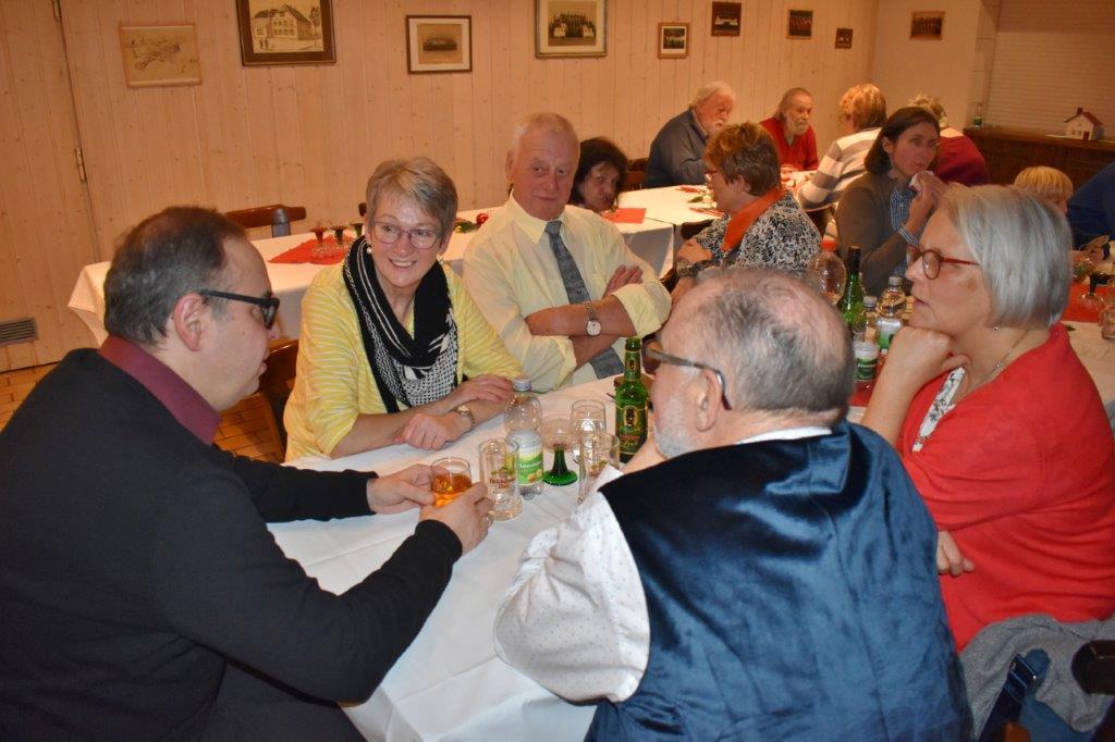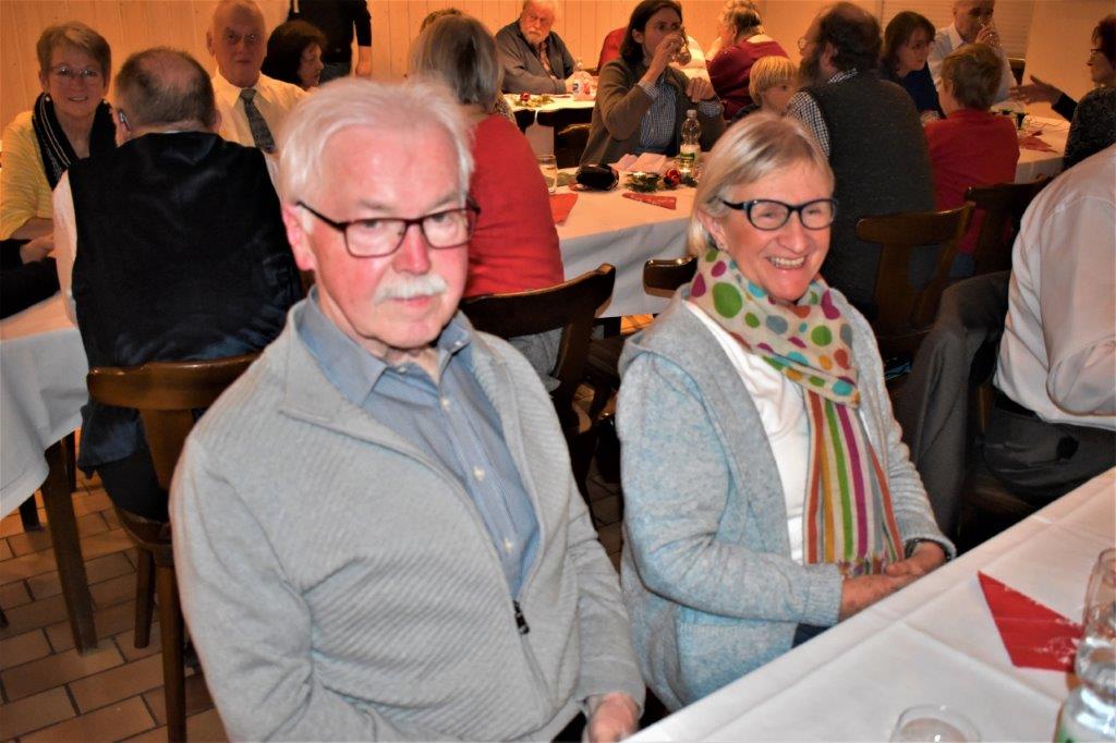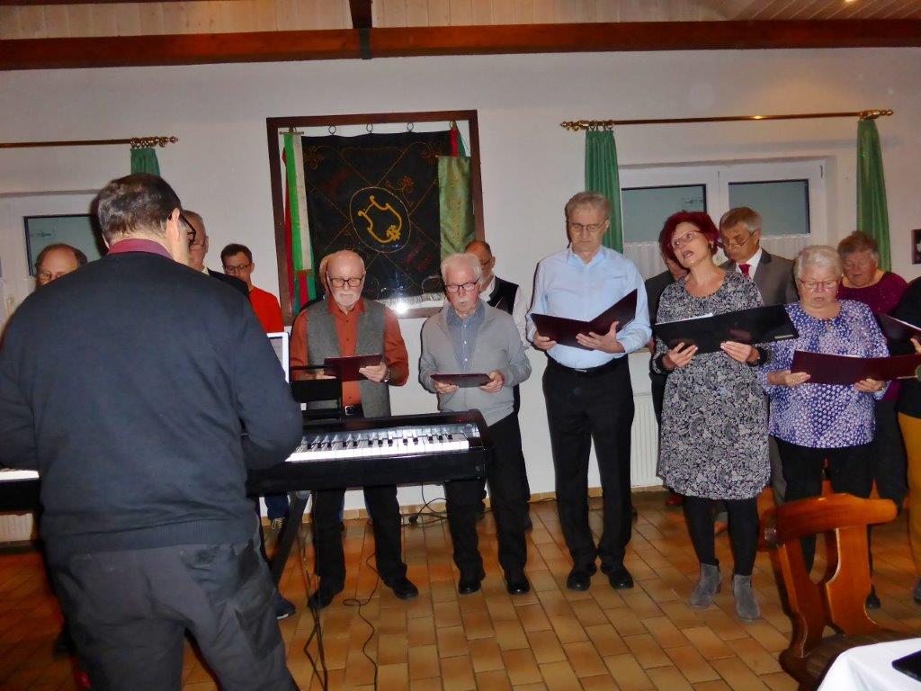 Endlich durften wir nach 3 Jahren wieder im Erlich zusammen kommen und mit Tannenbaum, Kerzenlichtern und festlicher Stimmung an den Tischen Platz nehmen. Unser Vorstand Klaus Reinhardt begrüßte alle Anwesenden und wünschte einen schönen Abend und den hatten wir. Zuerst sangen wir mit Aldo sechs Weihnachtslieder, eine gute Mischung und Rainer Ritz durfte beim „Weihnachtsgesang“ als Solist brillieren, gekonnt ist eben gekonnt! Dann konnte das von Vanny gelieferte warme Buffet eröffnet werden, das war auch gelungen, einschließlich der feinen Salate unserer Sängerinnen. Mit Getränken wurden wir auch versorgt, da waren unsere drei fleißigen Küchenfeen im Einsatz und wir konnten das leckere Essen entspannt genießen. Im Anschluss überreichte Klaus Reinhardt unserem Dirigenten Aldo Martinez eine Weihnachtstüte mit Dankesworten, über die sich Aldo sehr freute und sich bedankte. Leider musste er unsere Feier schon verlassen, da er noch eine andere familiäre Verpflichtung hatte. Nun übernahm unsere Sängerin Ute König das Zepter und führte uns mit sehr viel Gefühl durch das Programm. Heidi und Klaus Eichsteller eröffneten den Reigen mit einem musikalischen Beitrag, es folgte Christa Jung-Wittiger mit einer Weihnachtsgeschichte, wie eine köstlich gebratene Ente unerwartete Gaumenfreuden für Obdachlose unter einer Brücke bescherte. Klaus Reinhardt verlas auch eine in diese unruhige Zeit passende Geschichte, gefolgt von einem schönen Gedicht, das Hildegard Setzchen vorlas. Hannelore Dürr hatte eine rührende Geschichte über ein Enkelkind und eine verlorengegangene Masche in einem von ihm selbst gestrickten Schal, den die Oma bekommen sollte. Reinhilde Fürniß hatte ihre Gitarre dabei und sang uns das Lied „Joseph“ von Georges Moustaki – sehr gut, Reinhilde. Das Flötenspiel von Heidi Eichsteller beeindruckte auch, ebenso die Stücke, die uns Klaus Eichsteller auf seinem Keybord vorspielte. Nun war es Zeit für eine süße Pause! Unsere Helferinnen hatten emsig die Desserttafel gedeckt mit feinen Cremes, Obstsalat, Plätzchen, Orangenkuchen, ja sogar warmen Apfelstrudel mit Vanillesoße, frisch gebacken und serviert von unserem Koch Robert. Dankeschön, da gings uns doch wieder richtig gut!! Da konnten wir der „hinterlistigen Geschichte“ von Rainer Ritz gewappnet entgegensehen. Hartmut sang uns danach das Lied einer fränkischen Weihnacht mit einer knusprig gebratenen Weihnachtsgans, die sich wohl nicht rechtzeitig in Sicherheit gebracht hatte und sogar der Oma, püriert durch den Strohhalm gesogen, mundete. Super Hartmut! Nun folgte ein Sketch unter der Regie von Klaus Eichsteller mit einem ganz aktuellen Thema: Glasfaser und Hotline! Von den ewigen Warteschleifen bei Anruf der Hotlines kann doch bald jeder ein Lied singen. Das bekam auch die Familie Wockenberg zu spüren, authentisch gespielt von: Heidi Eichsteller und Robert Schnell und Tochter: Jola Strzlecka und Rainer Ritz, der den schlitzohrigen Opa mimte. Köstlich, was dieser Sprachcomputer am Telefon versteht und letztendlich nicht an den nächsten freien Mitarbeiter verbindet, sondern den Anrufer zur Verzweiflung und gar zur Aufgabe bringt. Tolle Vorführung, danke den Akteuren! Heidi und Klaus Eichsteller beendeten mit einer Musikeinlage das Abendprogramm, natürlich in französisch, Heidi´s Spezialität, très bon! Überhaupt an Heidi und Klaus ein riesiges Dankeschön, haben sie doch einen Großteil des Programms gestaltet. Auch allen anderen Mitwirkenden des Abends vielen Dank, unserer Ute, die uns gekonnt durchs Programm führte, dem Küchen-Service-Team, unserem Vorstand für den tollen Weihnachtsbaum und merci für all die leckeren Salate und Desserts – fein gemacht.