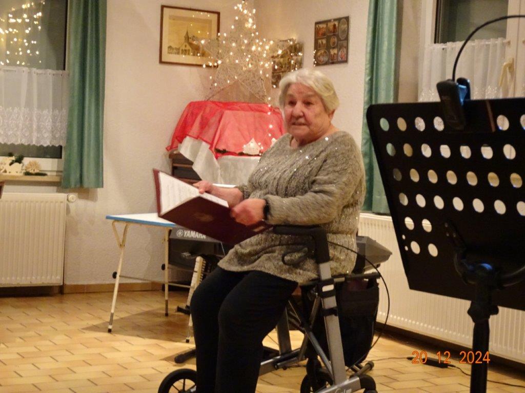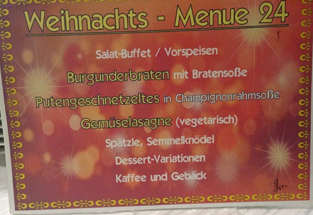 Hartmut führte uns nun wieder souverän durch den 2. Teil unserer Feier, bei dem uns Commander Klaus Eichsteller, bzw. Mc. Beth in seinem Raumschiff Entenfang durch die Galaxien führte und letztendlich mit Leonard Cohens Hallelujah in den Stall des Jesuskindes und dem Sinn der Weihnacht entführte. Brigitte Lang wusste uns eine lustige Geschichte vom doppelten Santa Claus zu erzählen und Klaus Reinhardt hatte eine Geschichte über „Selbstverständlichkeiten“ mitgebracht, wie wahr, dass doch vieles als selbstverständlich betrachtet wird und einem dies erst bewusst wird, wenn man es verloren hat, oder es mit den Augen eines Kindes betrachten kann. Zum Schluss des Programms spielte Klaus Eichsteller das schöne irische Weihnachtslied Fairytale of New York und gemeinsam sangen wir noch einige Weihnachtslieder, bevor dieser schöne Abend langsam zu Ende ging. Ein großes Danke hier wieder an Klaus Eichsteller, der mit seinen musikalischen und anderen Beiträgen einen Großteil des Programms gestaltete und natürlich an Hartmut, der einen guten Conferencier abgab, ebenso allen anderen, die sich am Programm beteiligten. Zudem an alle, die den Erlich so toll gerichtet, dekoriert und hinterher wieder aufgeräumt haben, Ute für die Blumendeko und allen, die für unser leibliches Wohl Leckeres zubereitet hatten. Ihr habt uns allen ein schönes Fest beschert – herzlichen Dank.