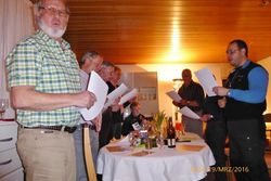 Ein kulturelles Highlight der besonderen Art wartete auf die Männer der Einigkeit am 19.03.2016 bei Familie Huck in Hochstetten. Gastgeber Peter Huck und unser "Wiskyprofessor" Henry Delincée hatten zur Whiskyprobe geladen. Acht Whiskyinteressierte darunter auch Chorleiter Aldo Martinez hatten sich zu diesem Event eingefunden. Henry hatte eine Auswahl seiner "königlichen" Getränke mitgebracht und erklärte uns zunächst, dass eine Whiskyverkostung nicht ohne besonderen Anlass stattfinden könne und so feierten wir den 257. Geburtstag des schottischen Nationaldichters Robert Burns (in Schottland am 25. Januar immer ein Großereignis) eben ein paar Tage später. Zu dieser Feier gehören eigentlich immer fünf Dinge: natürlich (jede Menge) Whisky, Haggis with Neeps and Tatties, Kilt, Tanz und Gesang. Mit Kilt und Tanz konnten wir nicht dienen, aber drei Voraussetzungen erfüllt - ist ja auch nicht schlecht.
